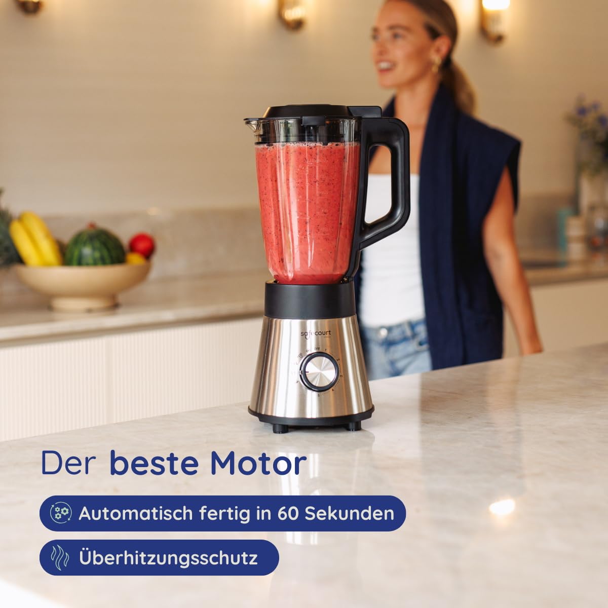 Safecourt standmixer – Kraftvoller Smoothie Maker, Blender & Mixer [1300W & 1,5L Glasbehälter] – für Smoothies, Shakes, Suppen, Dips und mehr [inkl. Sportbecher To-Go + Kaffeemühle]